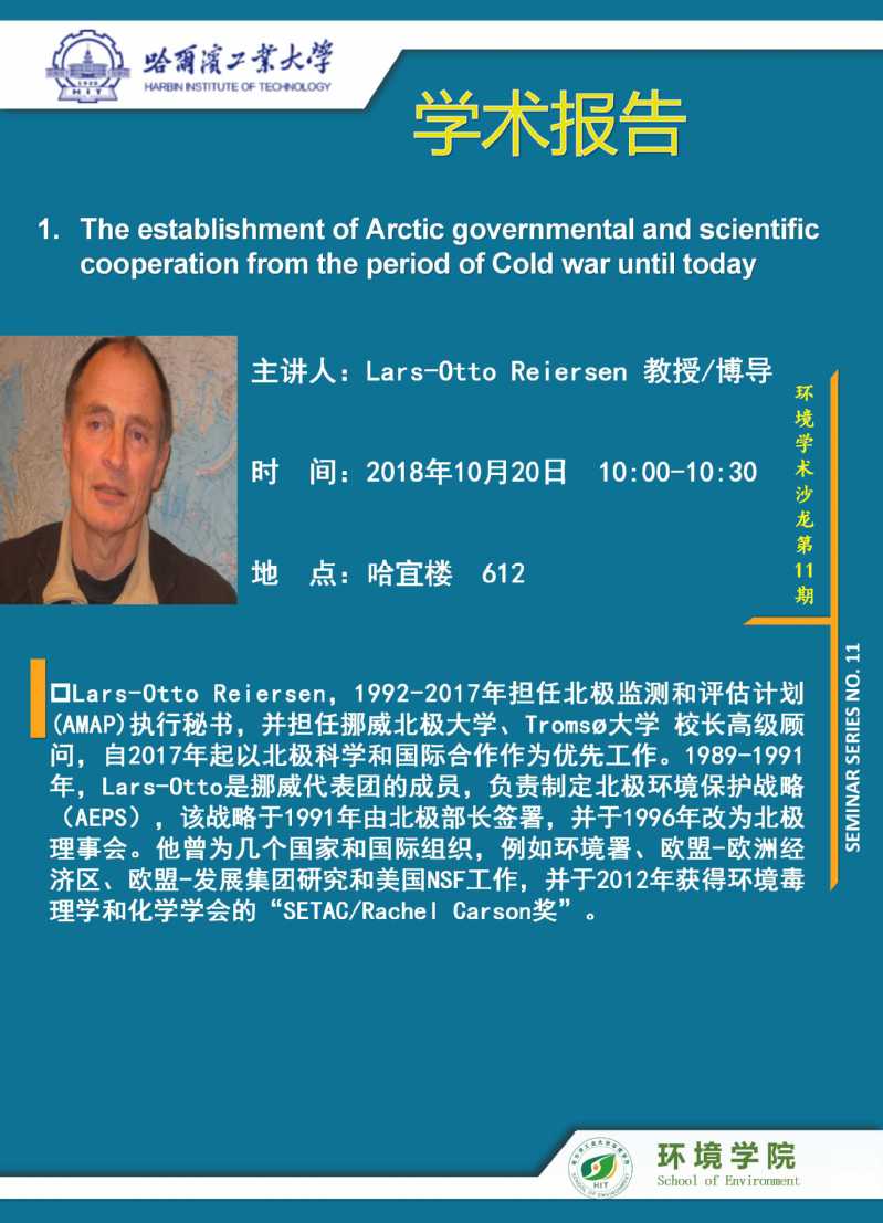 讲座题目: The establishment of Arctic governmental and scientific cooperation from the period of Cold war until today