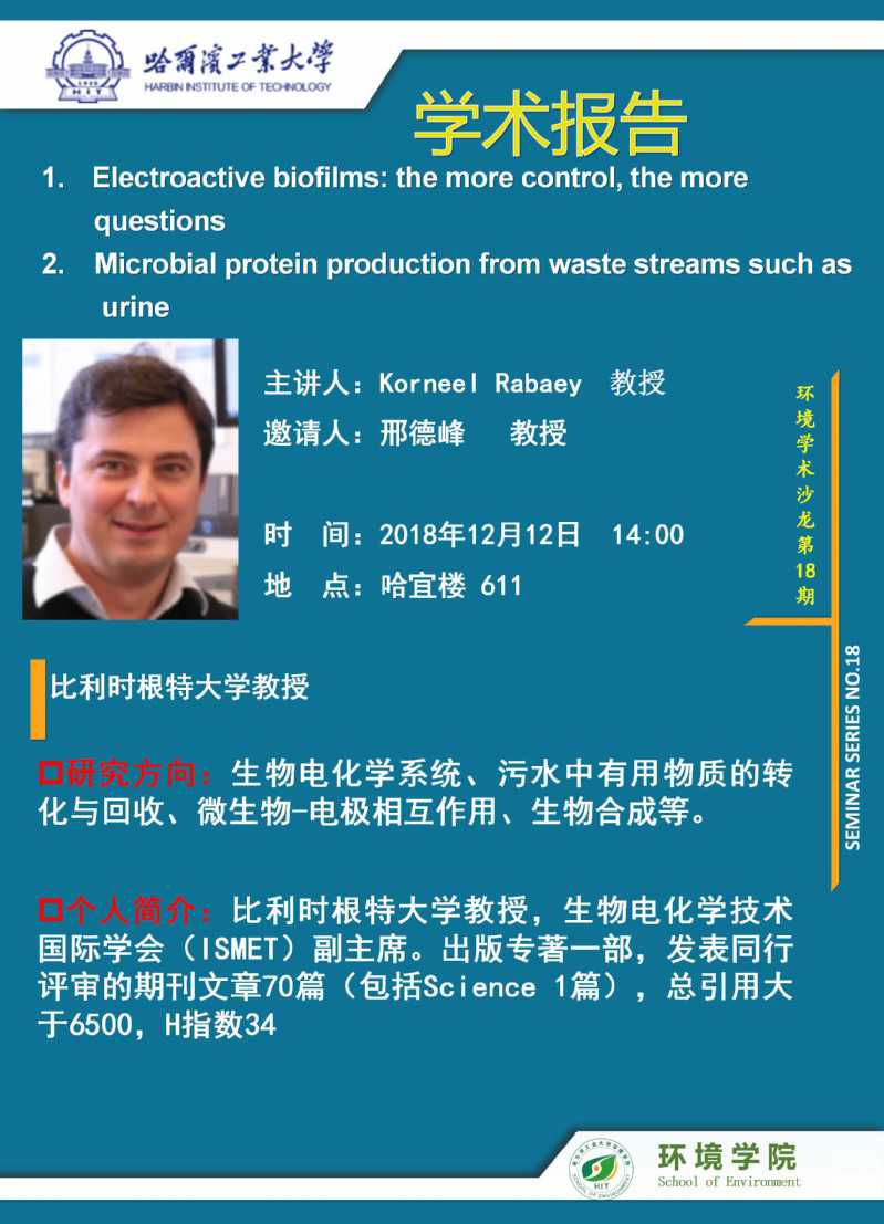 环境学术沙龙第18期——Korneel Rabaey教授学术报告