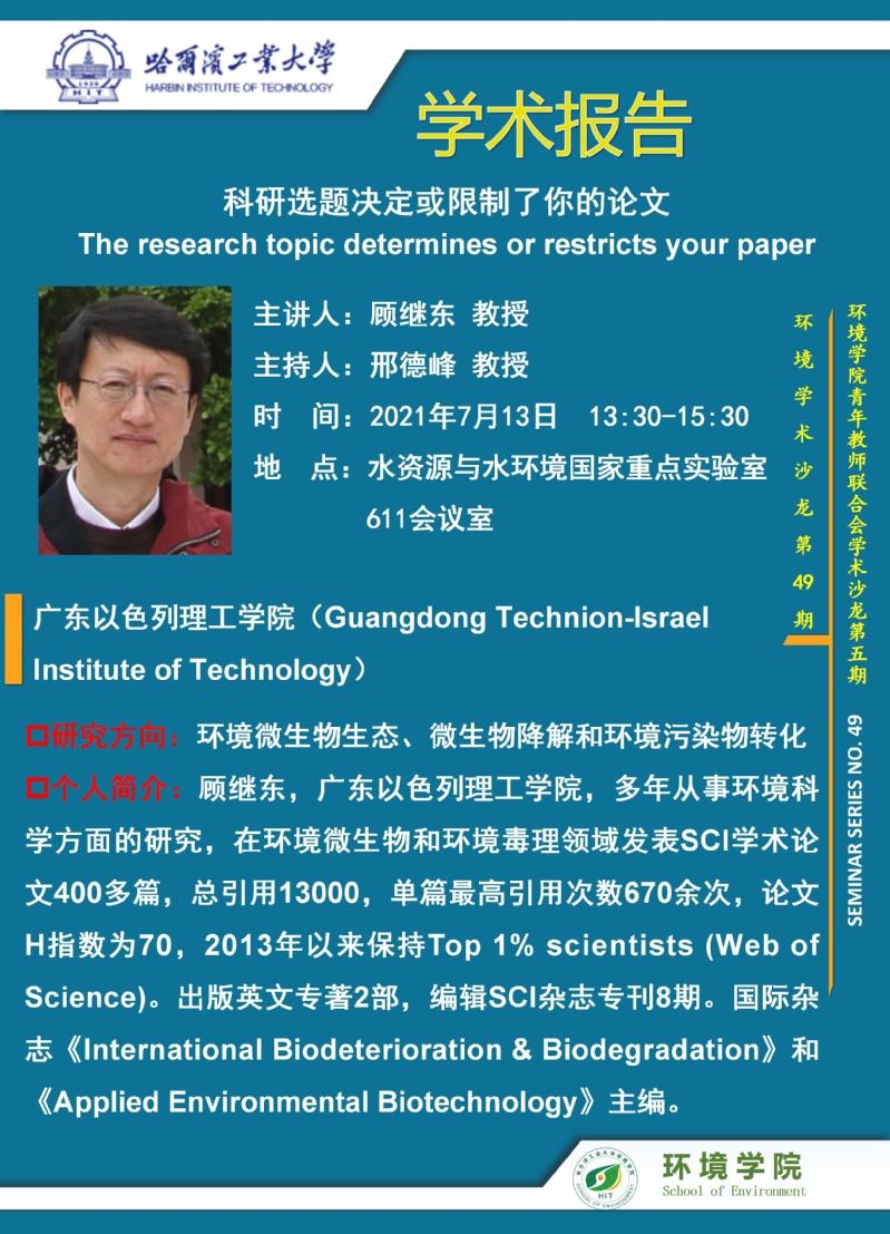 广东以色列理工学院顾继东教授将于2021年7月13日访问suncitygroup太阳集团并进行学术交流,欢迎感兴趣的师生参加。