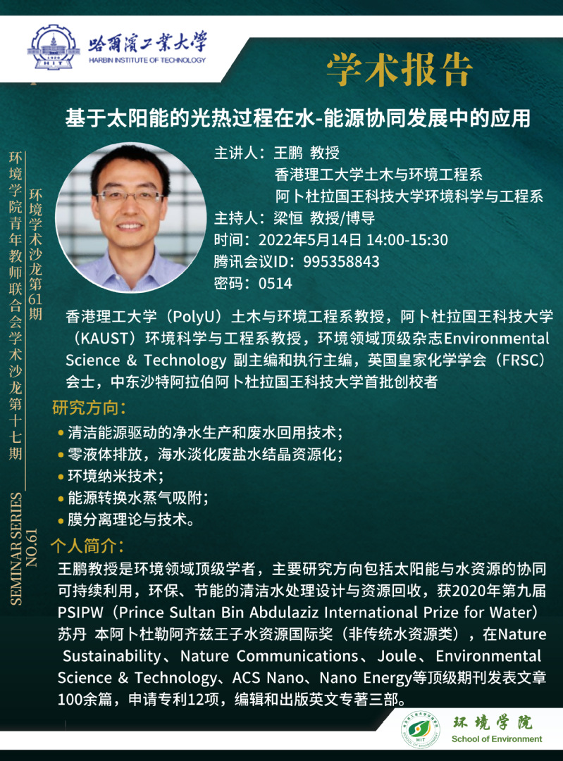 香港理工大学教授、阿卜杜拉国王科技大学教授王鹏老师将于2022年5月14日与suncitygroup太阳集团师生进行学术交流,欢迎感兴趣的师生参加线上学术报告会。