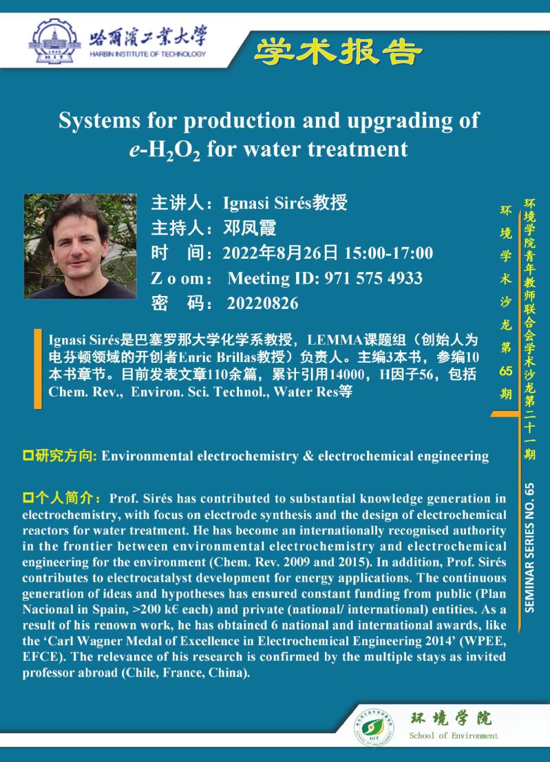 报告题目:Systems for production and upgrading of e-H2O2 for water treatment