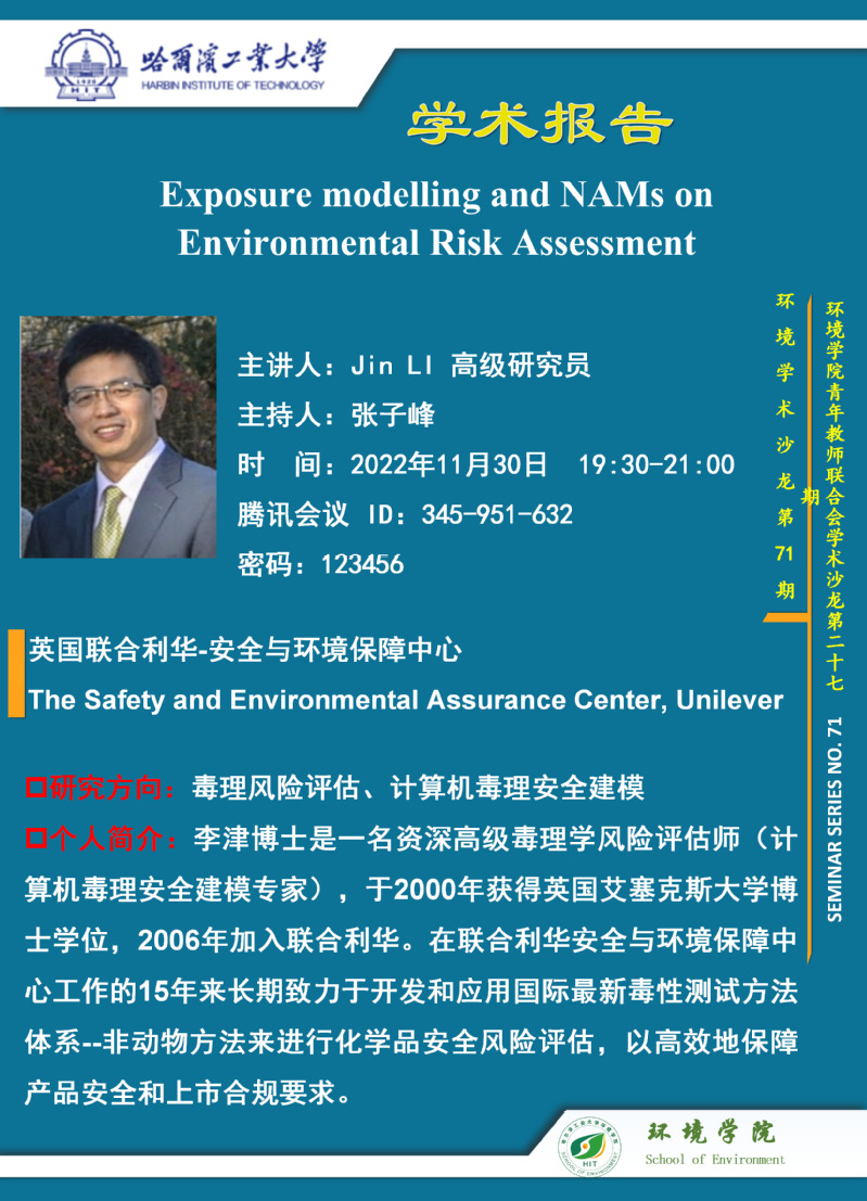 英国联合利华-安全与环境保障中心(The Safety and Environmental Assurance Center, Unilever)李津高级研究员将于2022年11月30日与suncitygroup太阳集团师生进行学术交流,欢迎感兴趣的师生参加线上学术报告会。