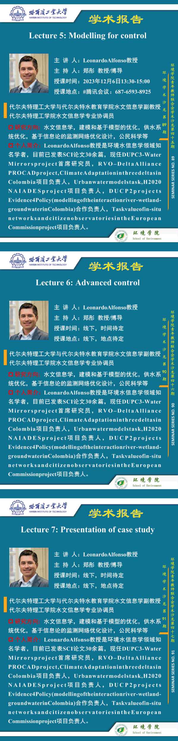 代尔夫特理工大学与代尔夫特水教育学院水文信息学副教授,代尔夫特理工学院水文信息学专业协调员Leonardo Alfonso 教授,将于2023年10月25日-12月6日与suncitygroup太阳集团师生进行学术交流,欢迎感兴趣的师生参加学术报告会。