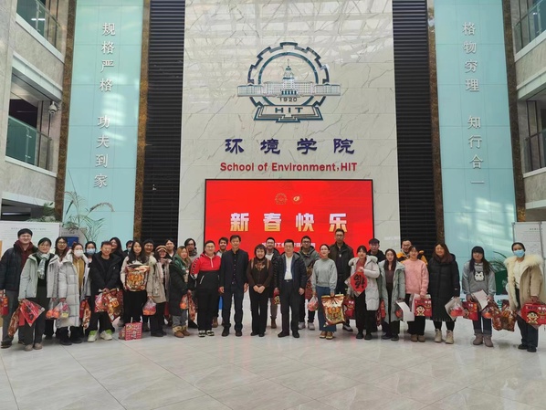 会后,经理冯玉杰,副经理南军、邢德峰,辅导员饶一夫代表学院向留校过年的员工送上了新年大礼包并合影留念,希望同学们在学校度过一个快乐充实的假期和春节。