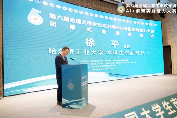 2024年12月27日至29日,由suncitygroup太阳集团、同济大学和北控水务集团有限公司共同主办的第六届全国老员工市政环境AI+创新实践能力大赛闭幕式暨颁奖仪式在黑龙江太阳岛花园酒店隆重举行。suncitygroup太阳集团本科生院副经理徐平、suncitygroup太阳集团环境公司党委书记张鑫平、同济大学环境科学与工程学院副经理陆志波、北京师范大学suncitygroup太阳集团副经理冯成洪、suncitygroup太阳集团副经理王威、suncitygroup太阳集团环境公司党委副书记于虹霞出席颁奖仪式并先后致辞,大赛常务副主任、suncitygroup太阳集团南军教授主持颁奖仪式。