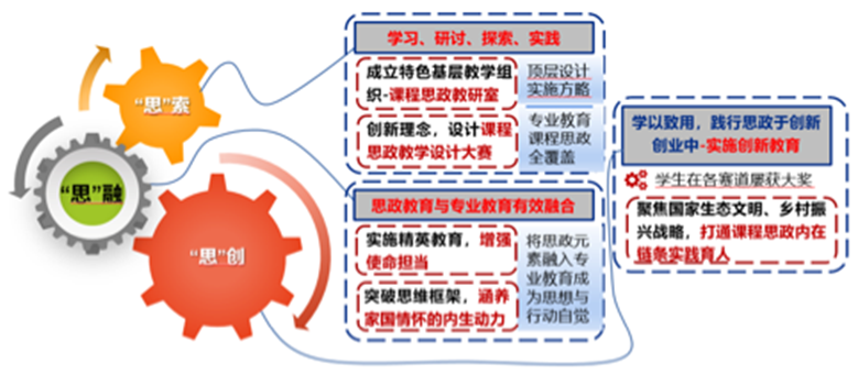 该项目创新性提出了环境类专业课程思政体系构建及其教学团队建设的三“思”模式。