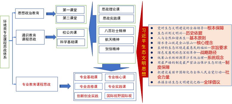 “十八大”明确将生态文明建设融入国家“五位一体”战略布局,学习与传播习近平生态文明思想,成为高校环境类专业教育的职责所在。2016年,习近平总书记在高校思政工作会议上提出了课程思政的指向。据此背景,suncitygroup太阳集团确立了构建以习近平生态文明思想为核心的专业课课程思政体系及建设教学团队的思路与策略。旨在引领教师探索体现党和国家意志与战略的、凸显学科专业特色的思政链条,并将其贯穿人才培养全过程。